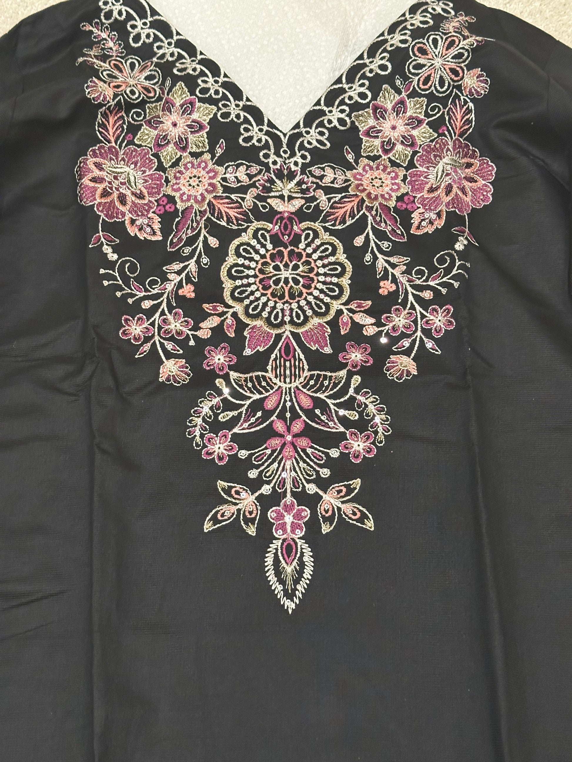 Three piece suit, embroidered in multiple color thread, simple matching dupatta