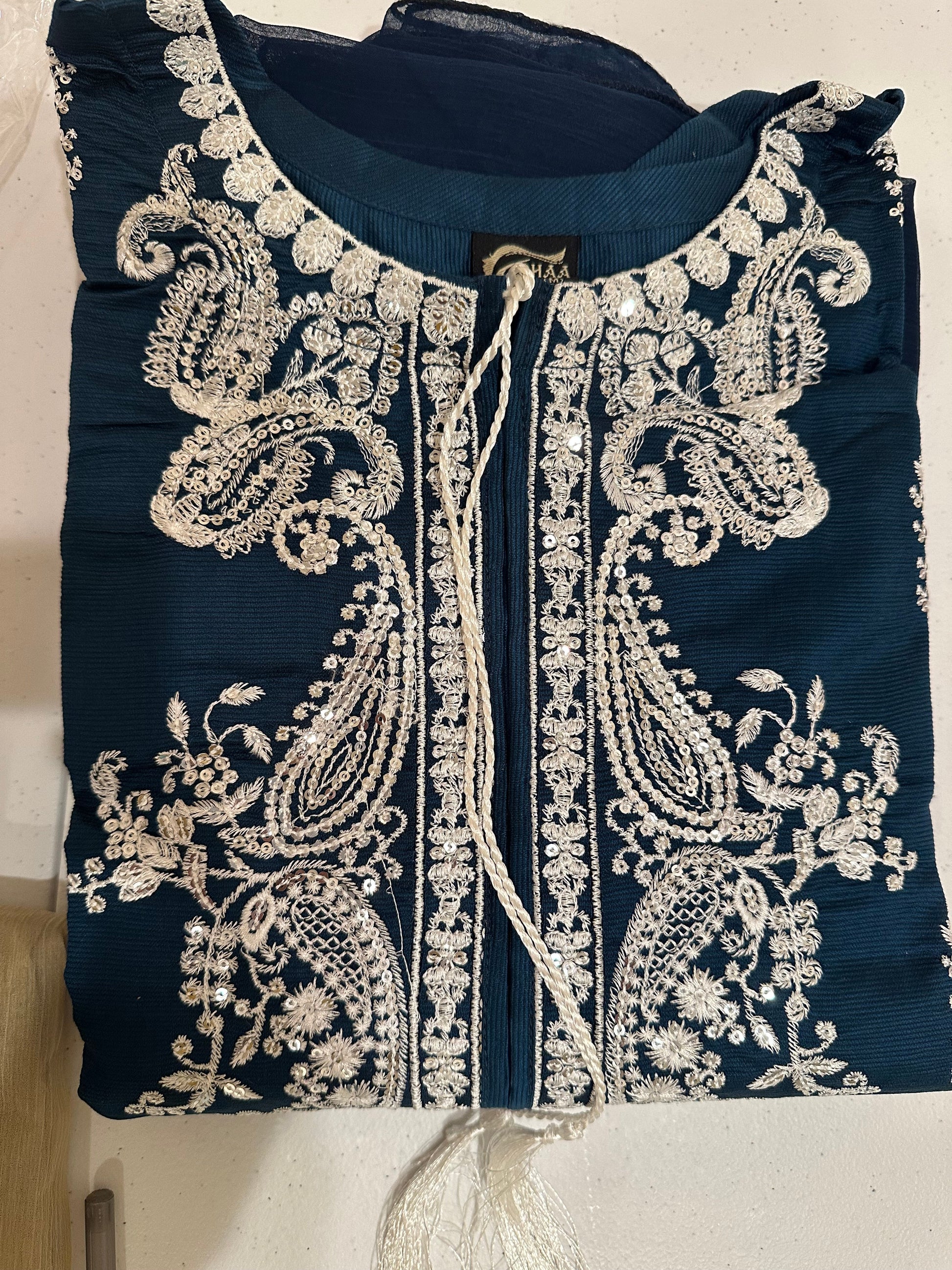 Three piece suit, embroidered, simple matching dupatta