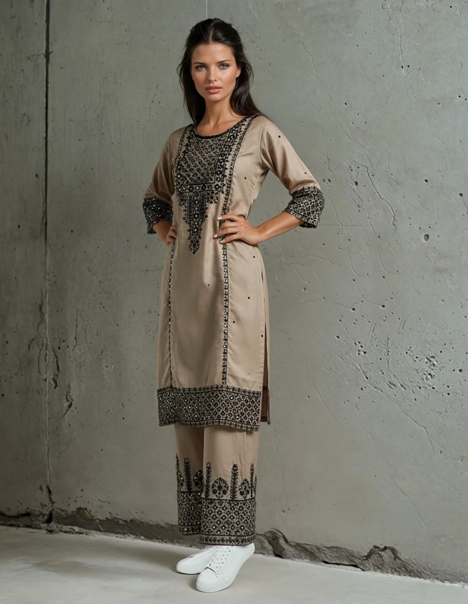 Three Piece Suit, Embroidered With Glass Like Shimmers,
